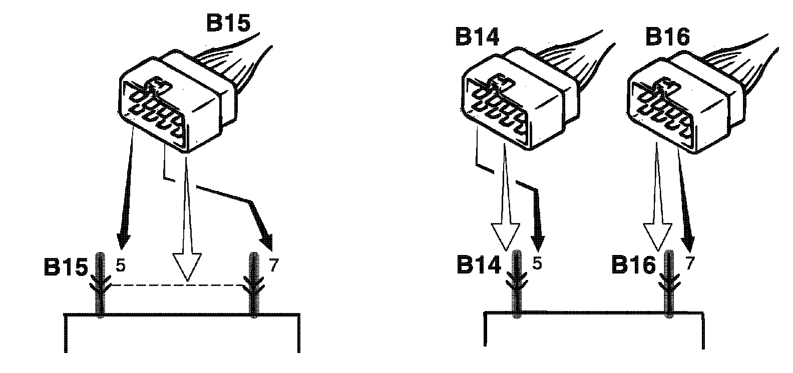 3. Terminals in one connector (Broken line) (B15)/Terminals in different connectors (B14,B16)