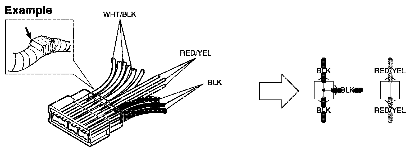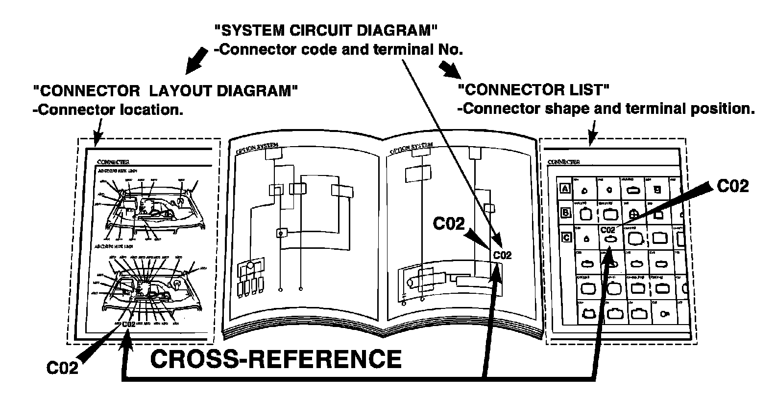 HOW TO READ CONNECTOR CODES AND TERMINAL NOS.1. Connector code/Terminal No./Terminal layout