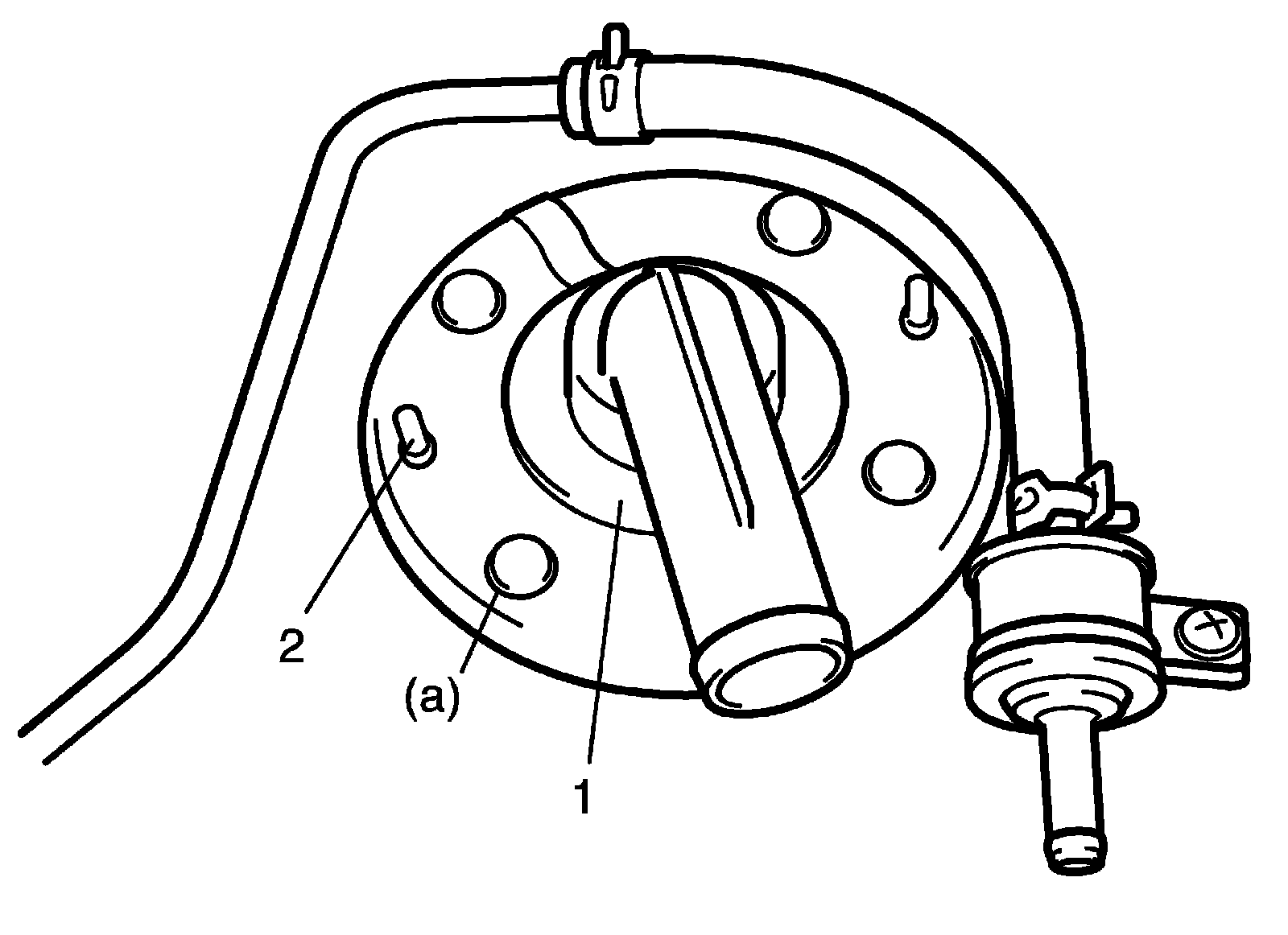 2. Install new gasket (2) to vapor control valve (1), and then vapor control valve (1) to fuel tank.