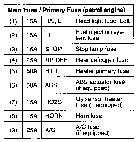 Under Dash Fuse Block (Driver's Side):