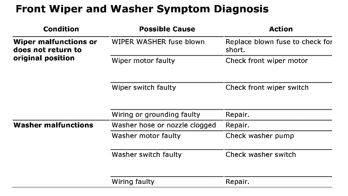 Front Wiper and Washer Symptom Diagnosis: