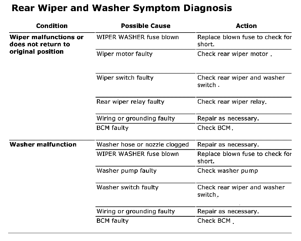 Rear Wiper and Washer Symptom Diagnosis: