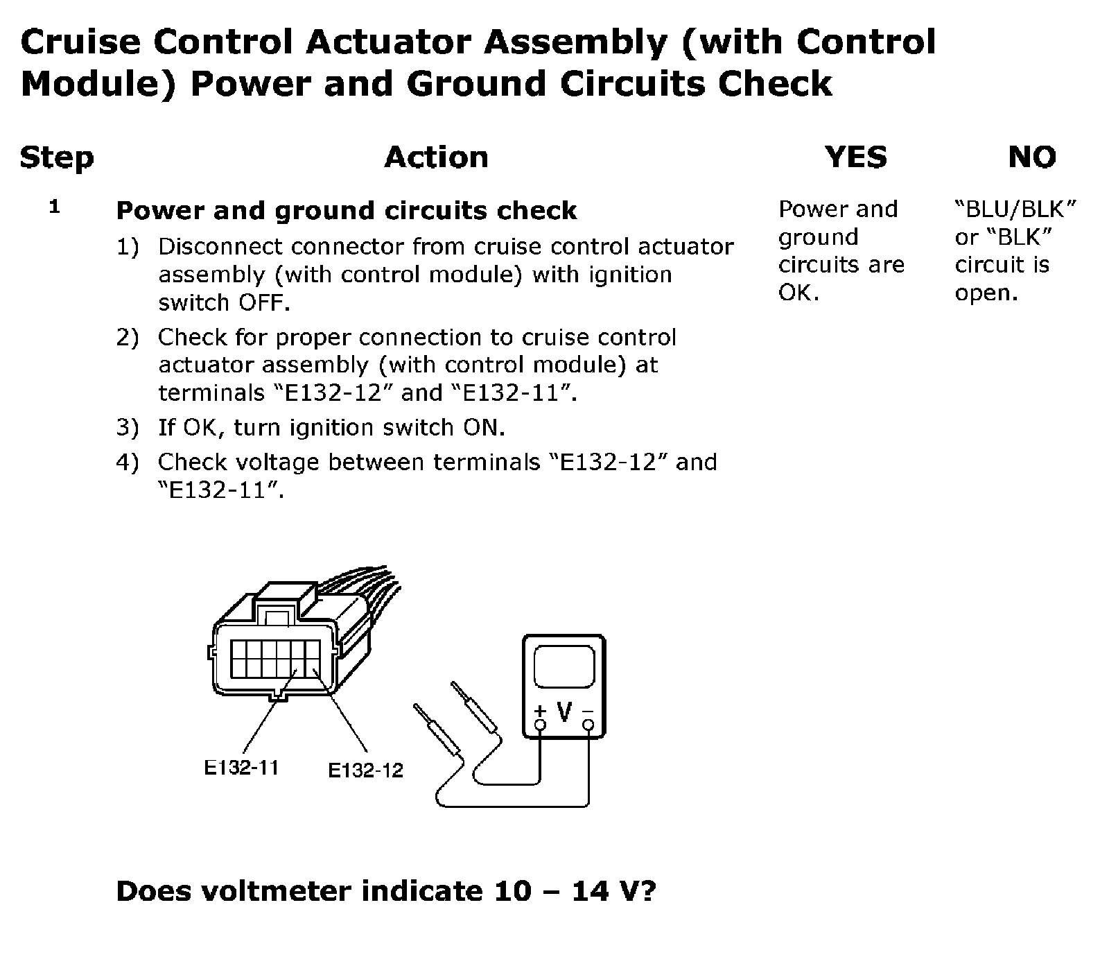 Cruise Control Actuator Assembly (With Control Module) Power and Ground Circuits Check