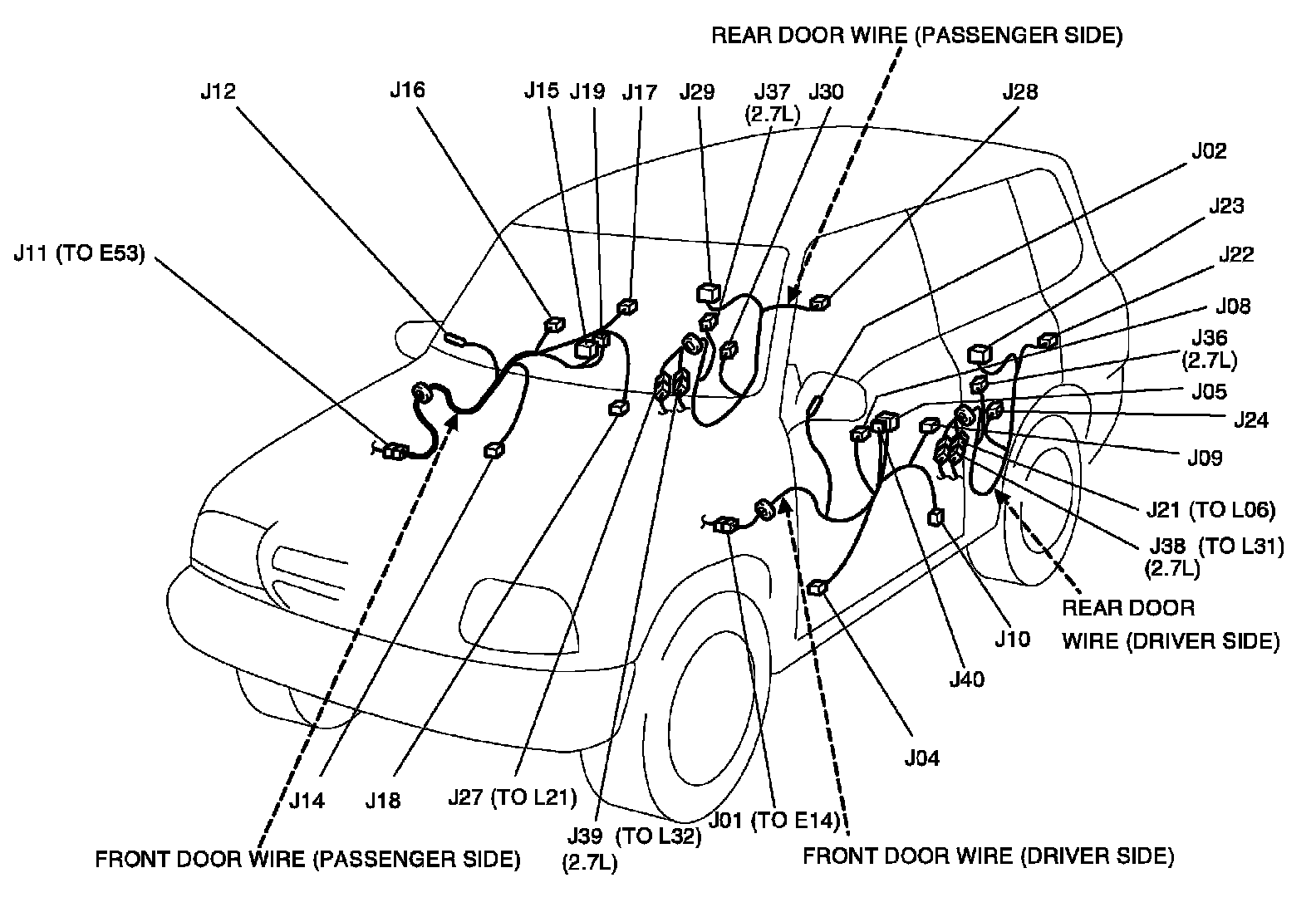 J: Front Door Wire And Rear Door Wire View: