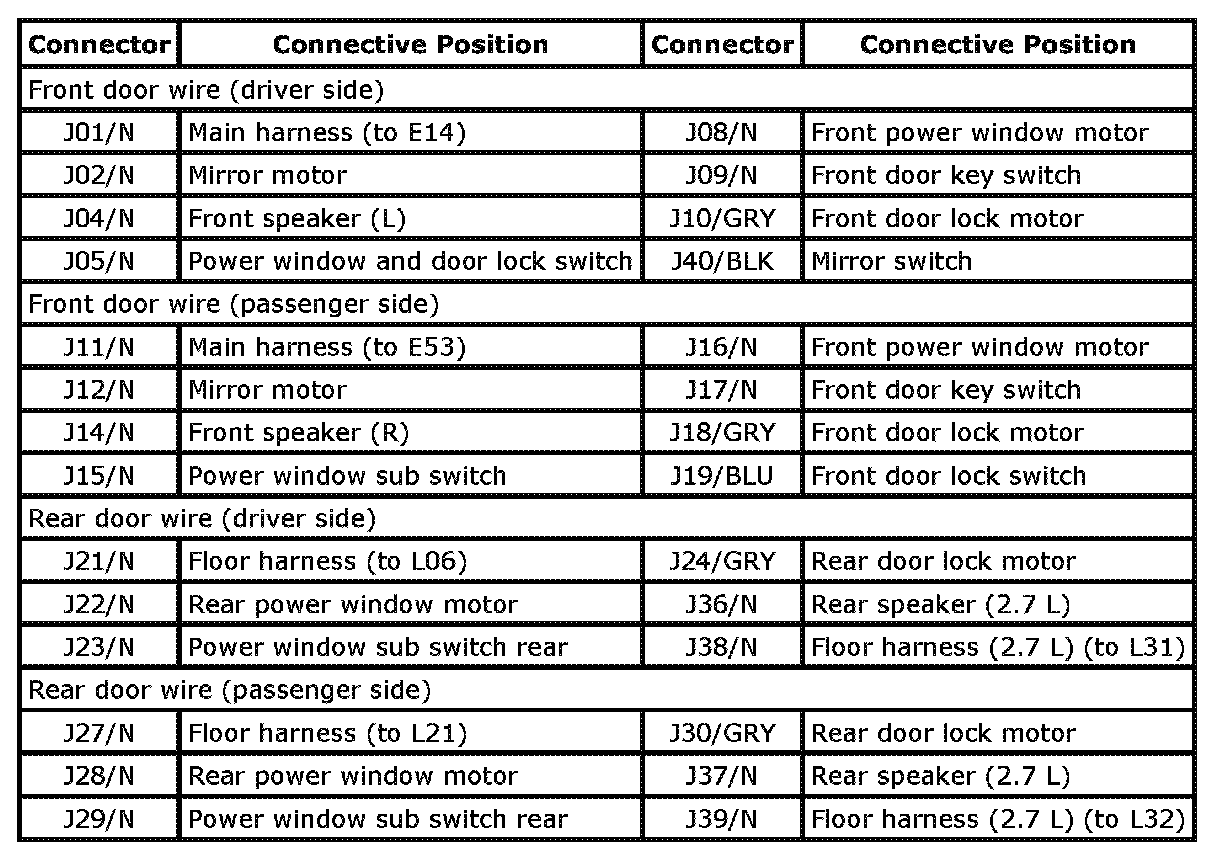 J: Front Door Wire And Rear Door Wire Index: