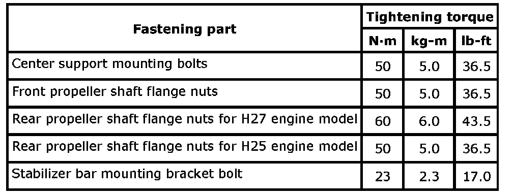 The specified tightening torque is also described in the following. Propeller Shaft Construction