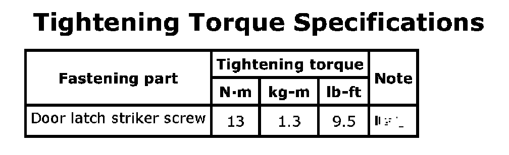 Tightening Torque Specifications: