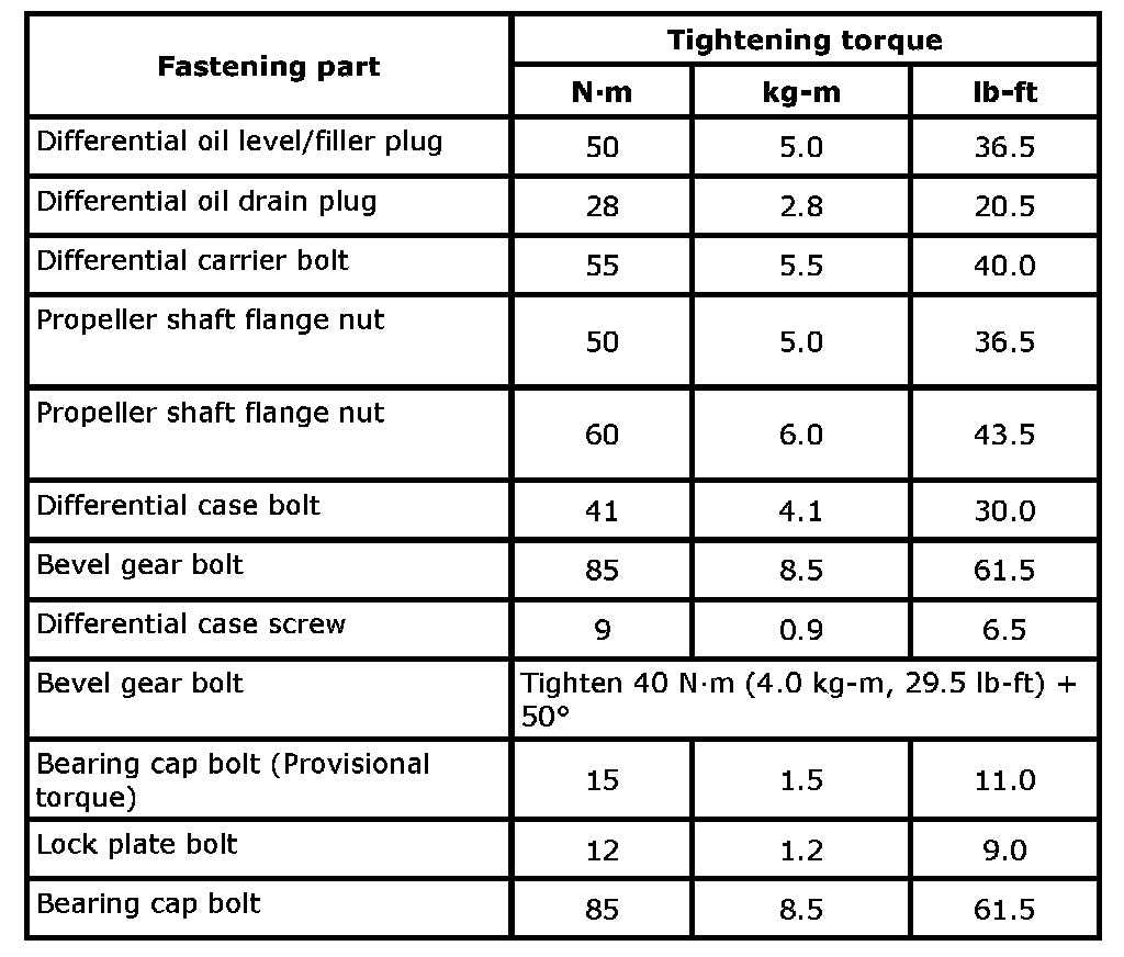 Reference: For the tightening torque of fastener not specified, refer to Fastener Information.