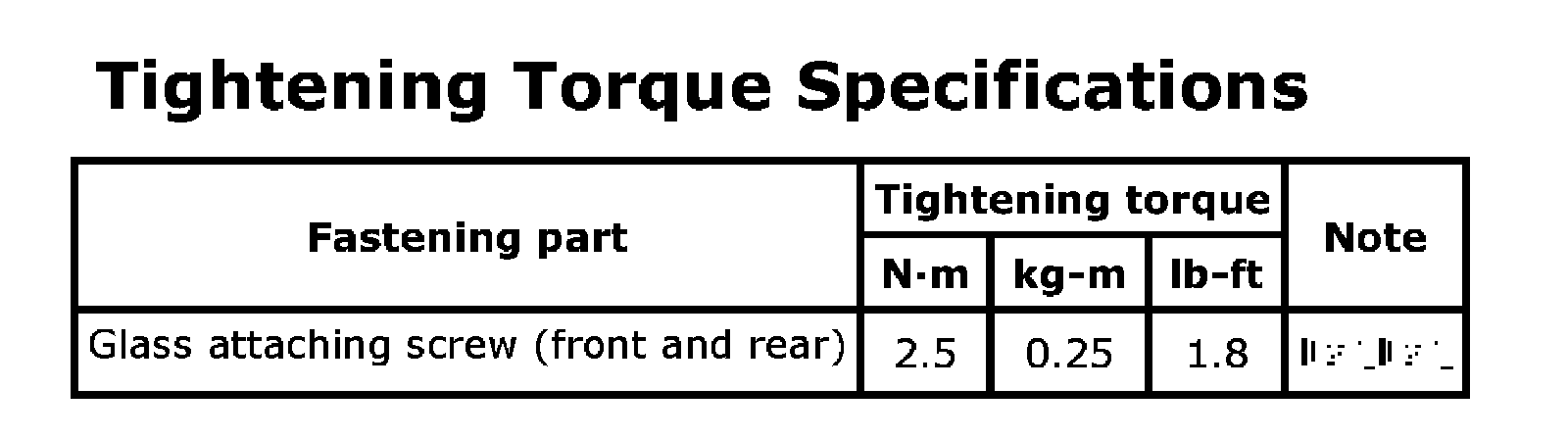 For the tightening torque of fastener not specified, refer to Fastener Information.