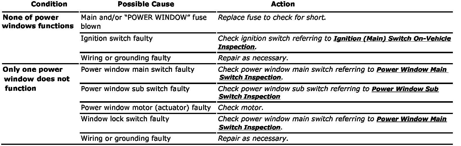 Power Window Control System Symptom Diagnosis: