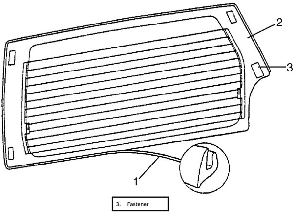 ^ Before applying primer to glass (2) edge, install molding (1) according to installing position shown in the figure.