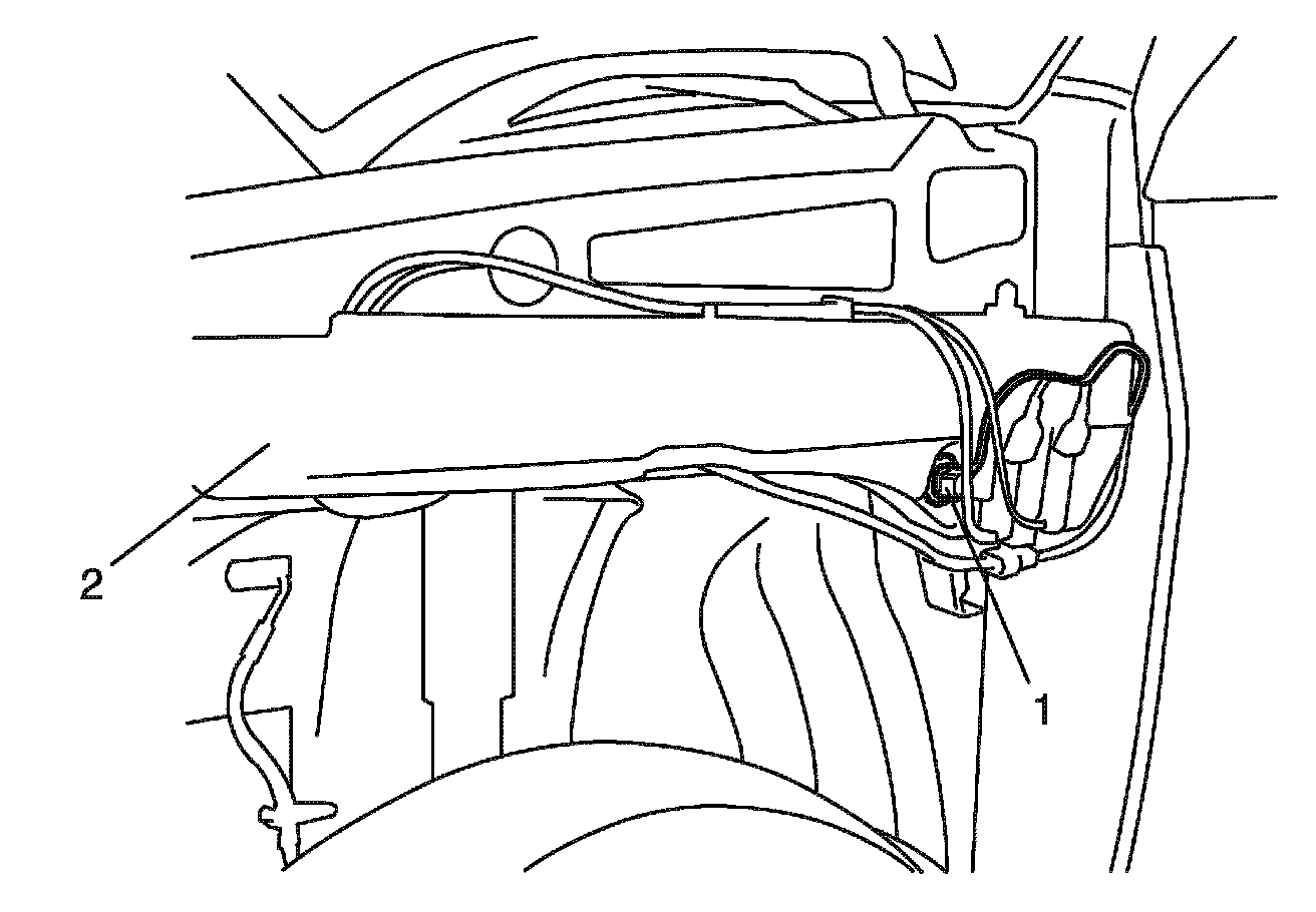 2. Remove windshield washer level switch (1) from windshield washer tank (2).