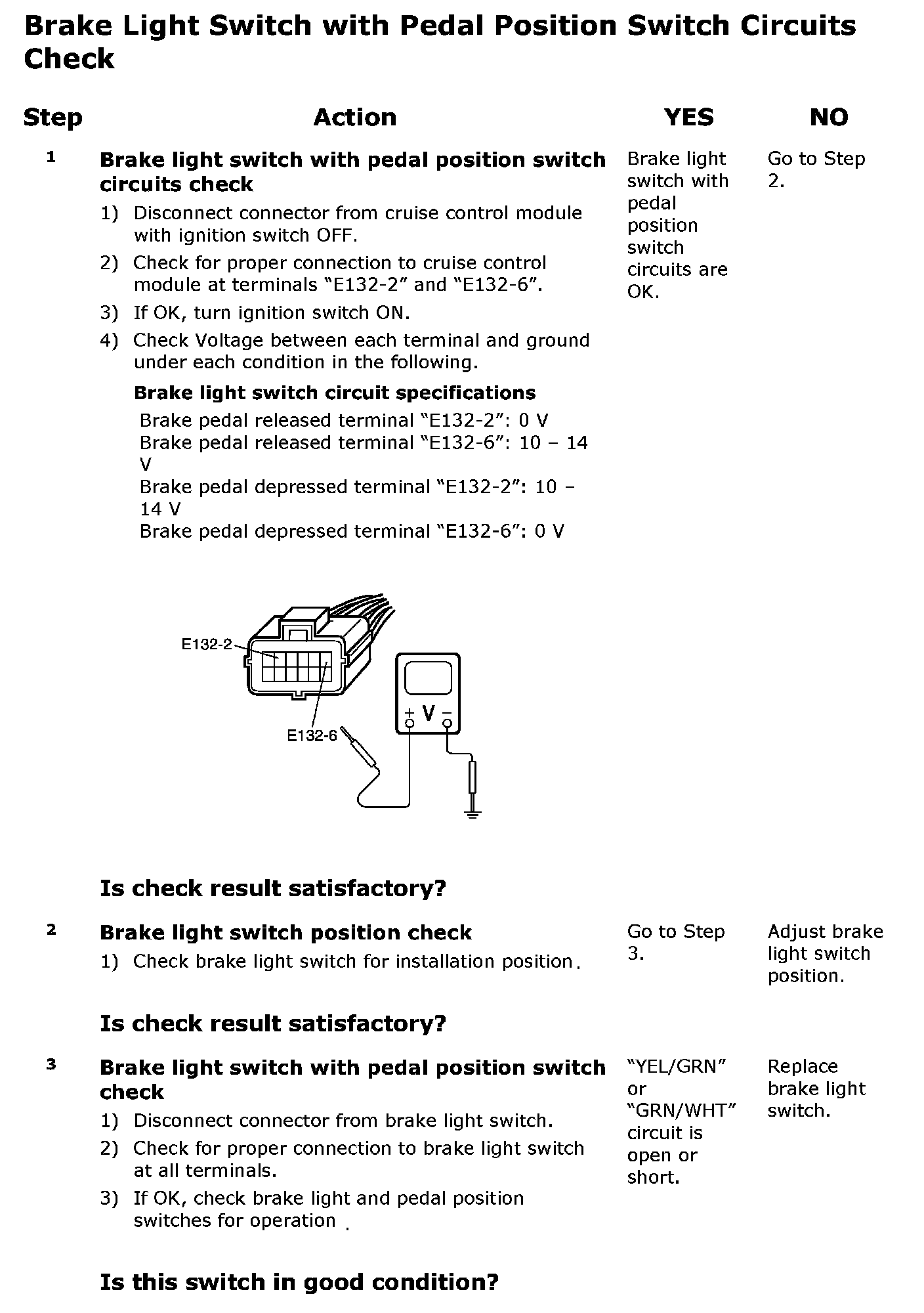 Brake Light Switch With Pedal Position Switch Circuits Check