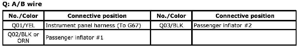 B: A/C Wire / F: Console Wire / G: Instrument Panel Harness / Q: A/B Wire View: