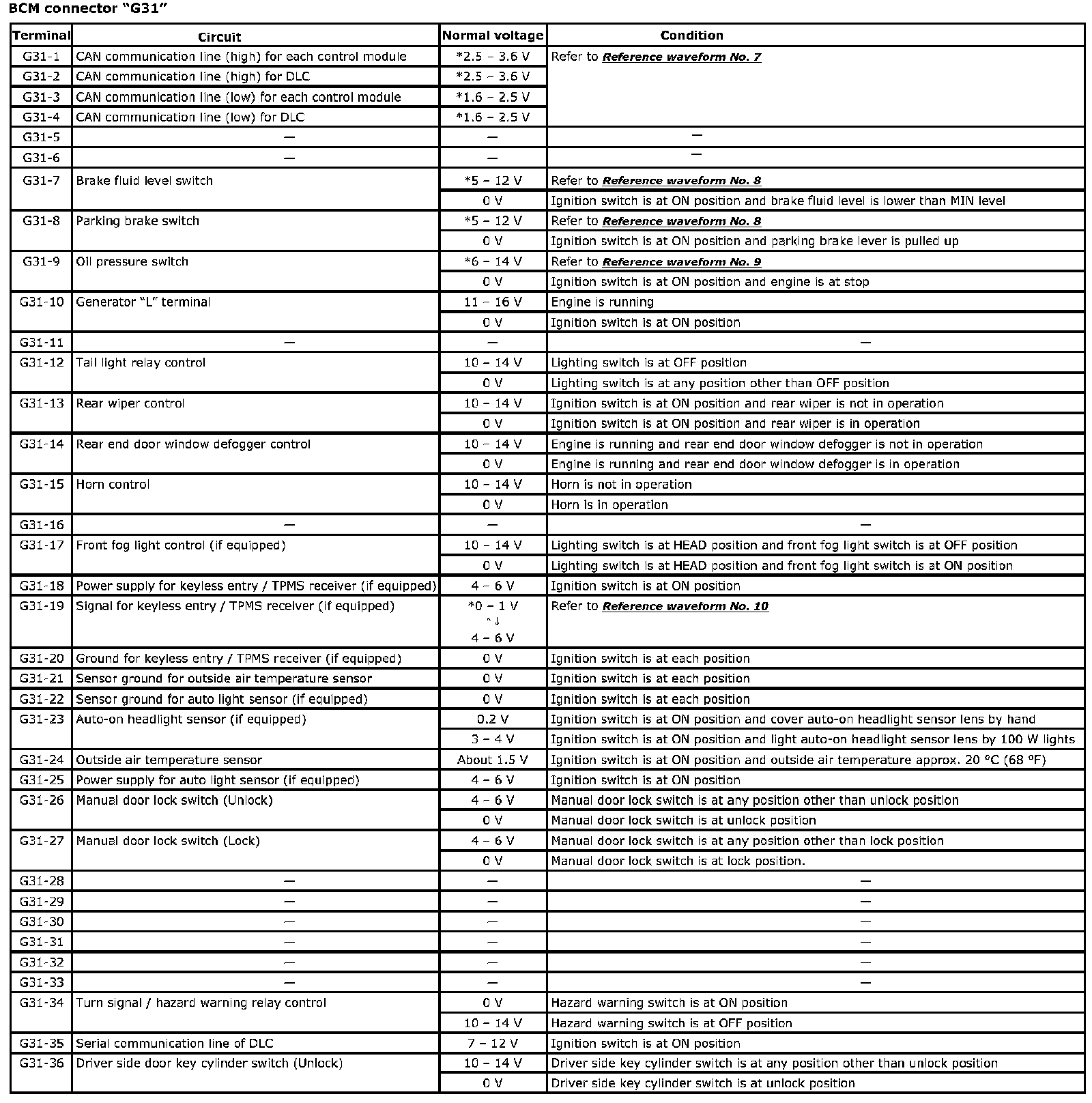 BCM Connector "G31" (Part 1):