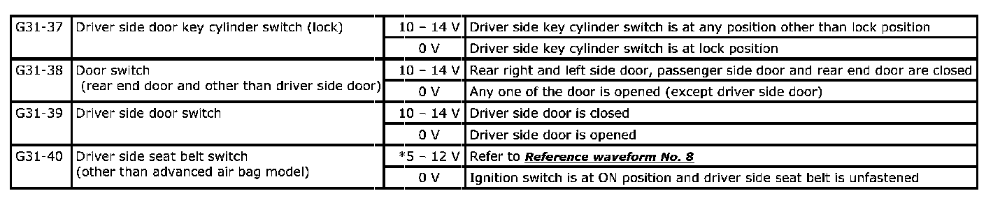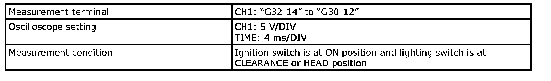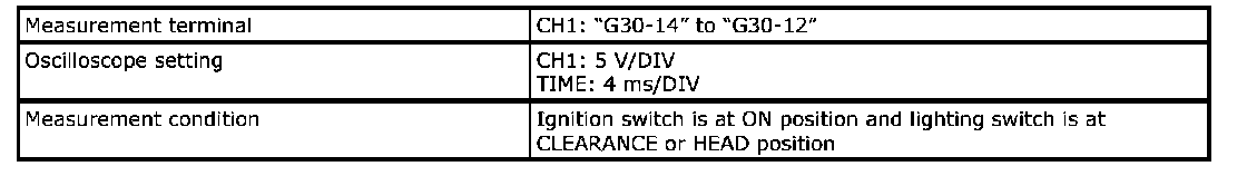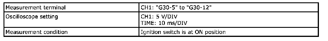 - As each terminal voltage is affected by the battery voltage, confirm that it is 11 V or more when ignition switch is ON.