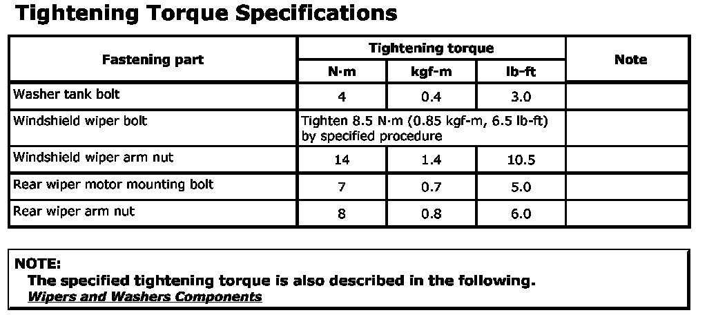 Tightening Torque Specifications: