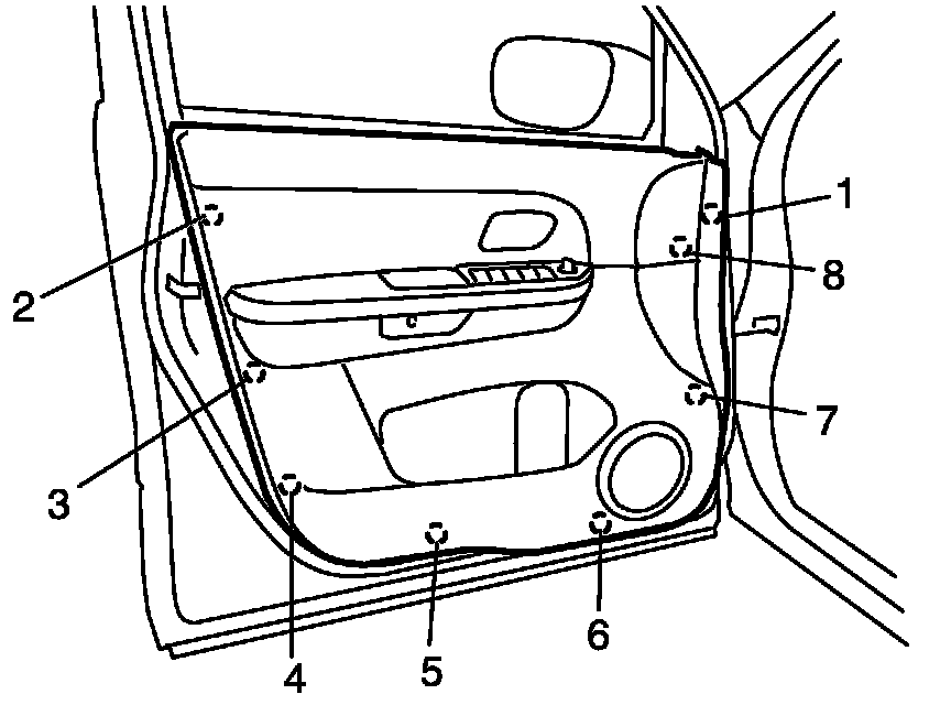 2. Remove door trim screw (3).