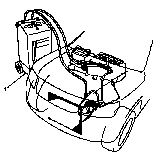 When discharging refrigerant out of A/C system, always recover it by using refrigerant recovery and recycling equipment (1). Discharging refrigerant HFC-134a (R134a) into atmosphere would cause adverse effect to environments.