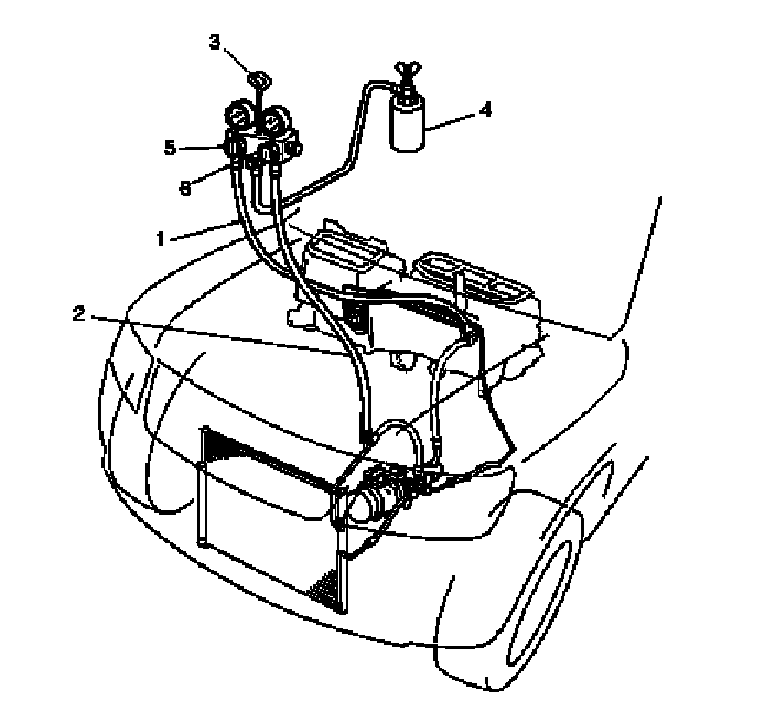 3. Open the high-pressure side valve (6) and charge refrigerant to system.