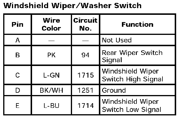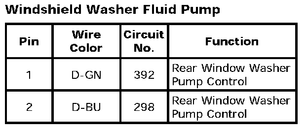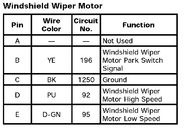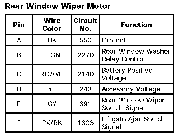 Wiper/Washer Connector End ViewsRear Window Wiper Motor