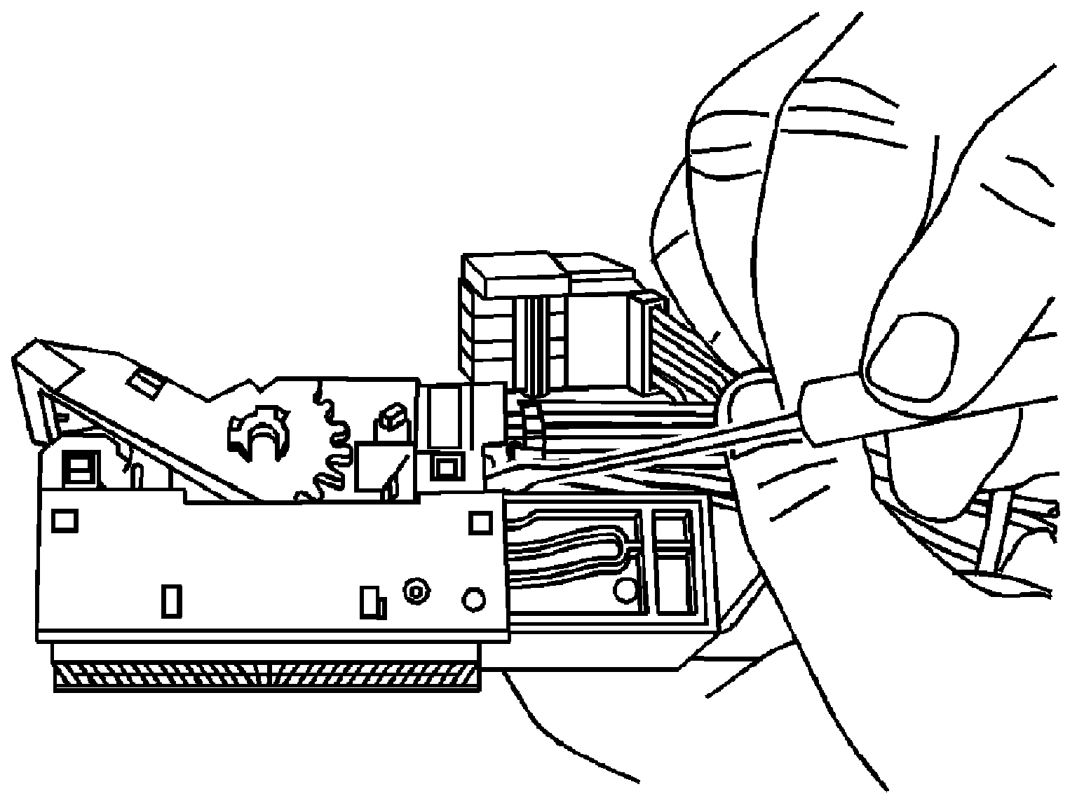 1. Locate the assist lever on the top of the connector. Move the assist lever to the forward position.