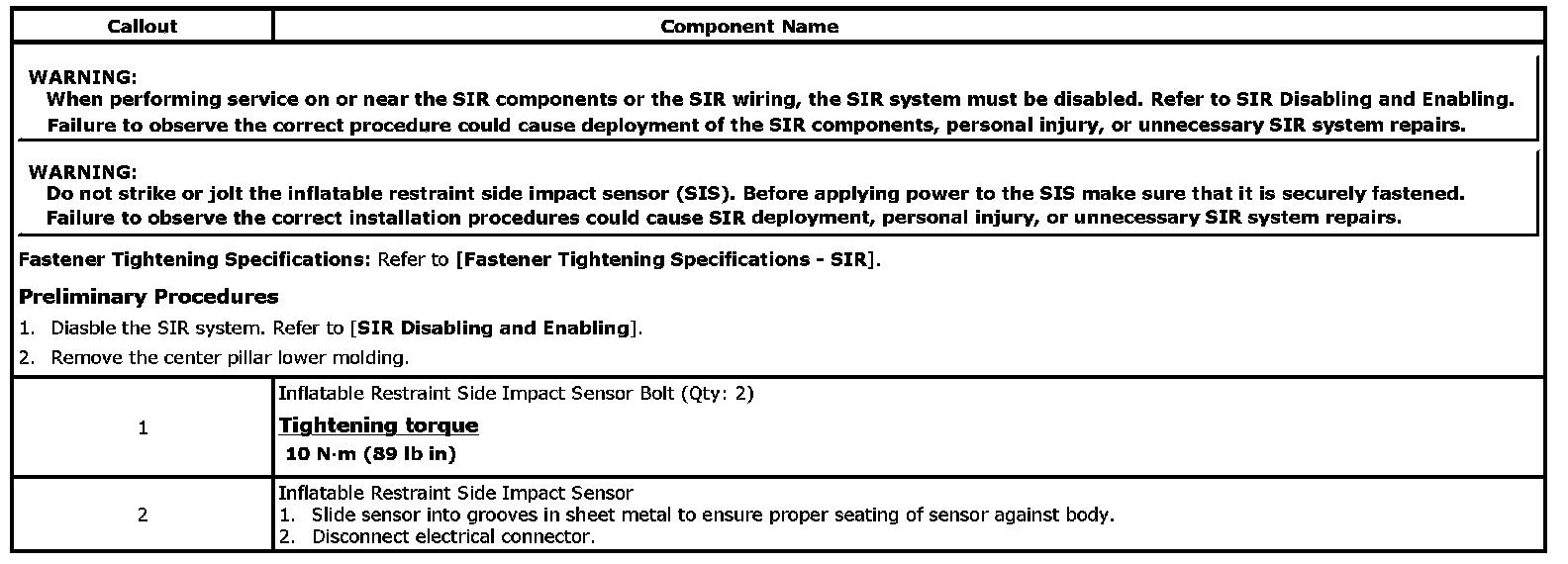 Inflatable Restraint Side Impact Sensor Replacement