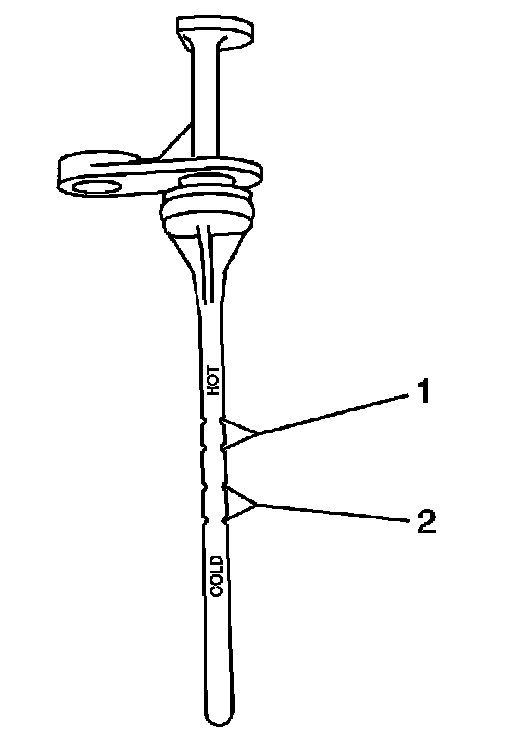 6. Remove the transaxle fluid level indicator (2).