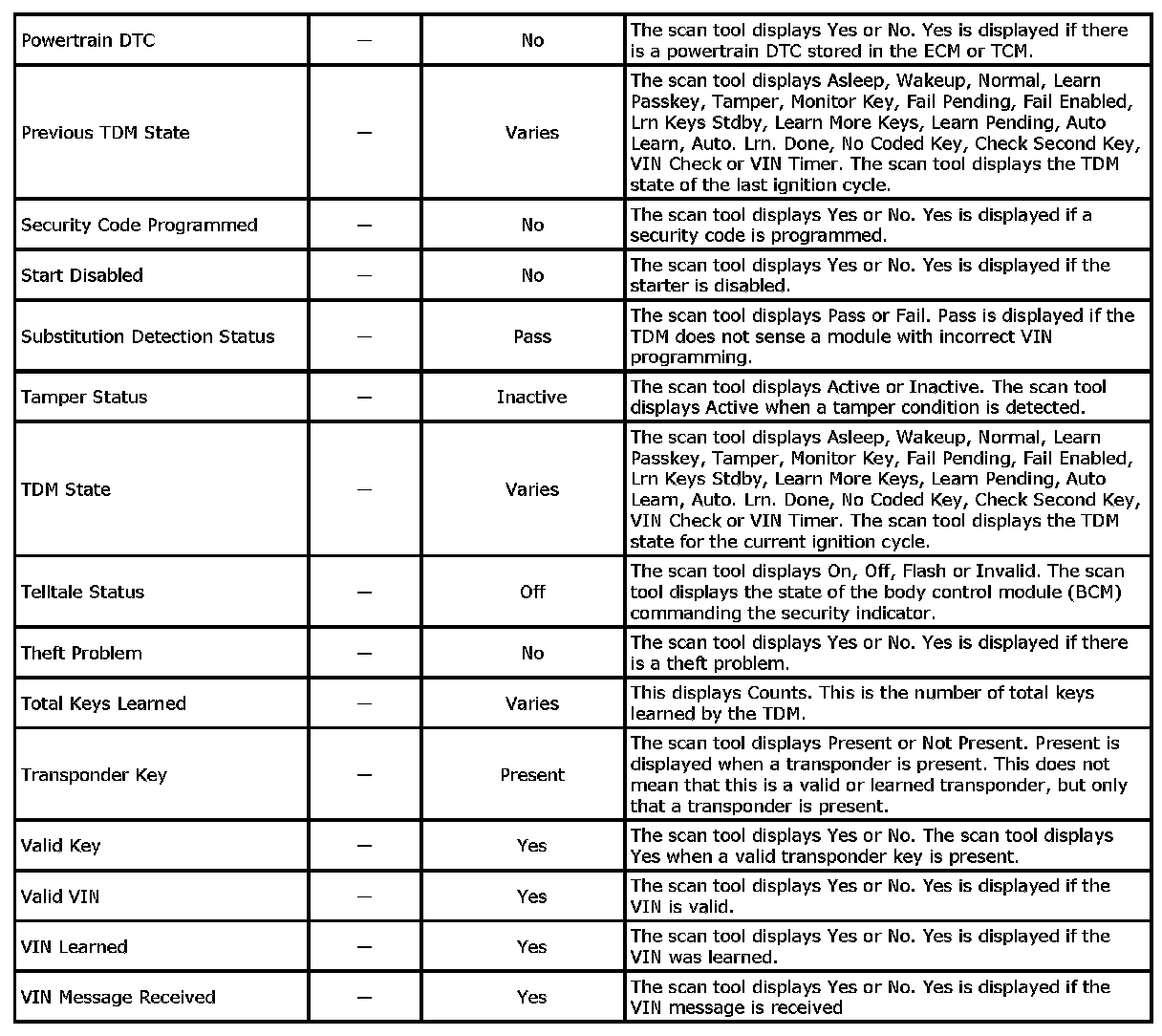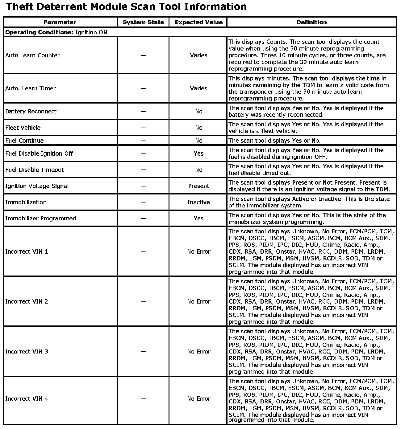 Theft Deterrent Module Scan Tool Information