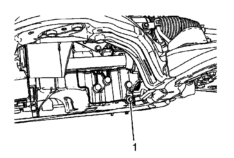 3. Remove the oil pan drain plug (1). Allow the oil to drain completely.