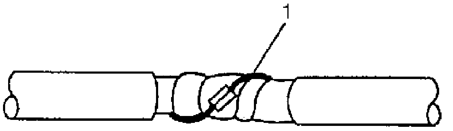 1. Remove the outer jacket (1). Use care not to cut into the drain wire of the mylar tape.