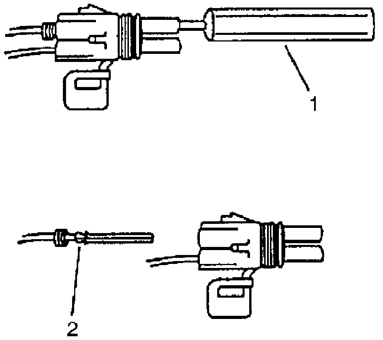 4. Gently pull the cable and the terminal (2) out of the back of the connector.
