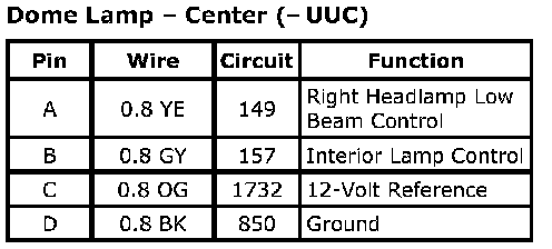 Dome Lamp - Center (- UUC)Connector Part Information