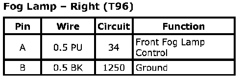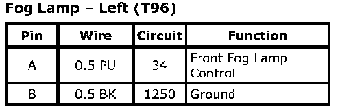 Fog Lamp - Left (T96)Connector Part Information