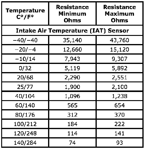 Temperature Versus Resistance - Intake Air Temperature Sensor:
