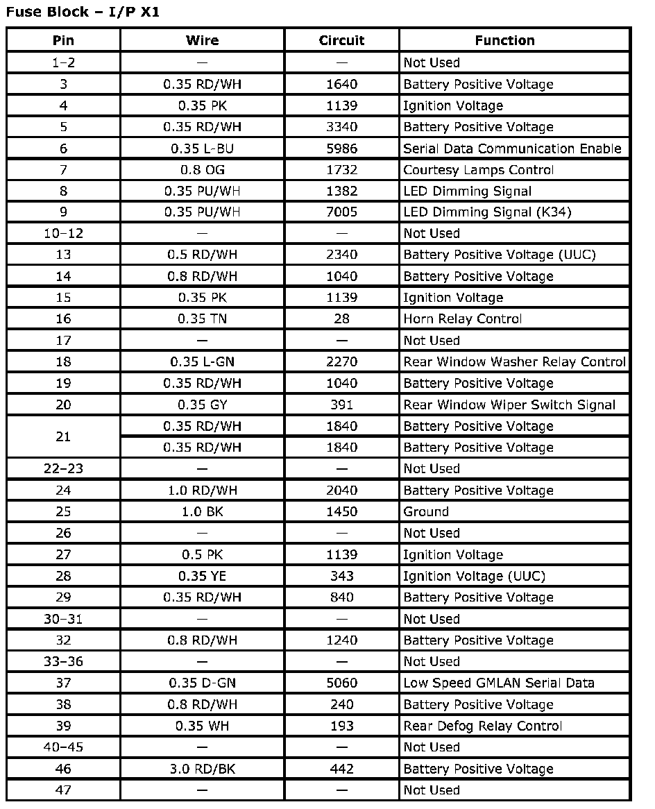 Fuse Block - I/P X1Connector Part Information