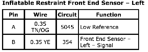 Inflatable Restraint Front End Sensor - LeftConnector Part Information