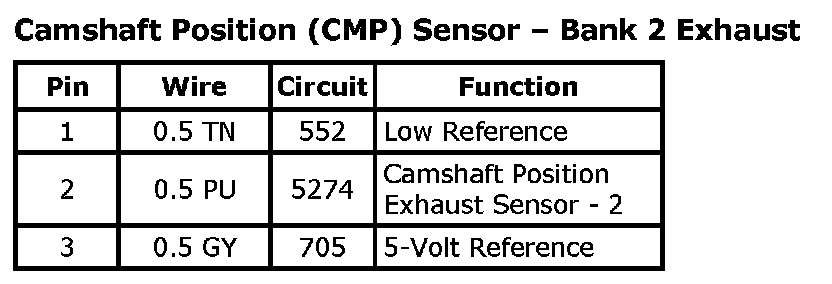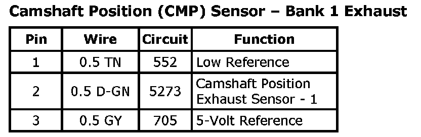 Camshaft Position (CMP) Sensor - Bank 1 ExhaustCamshaft Position (CMP) Sensor - Bank 1 Exhaust: