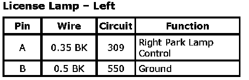 License Lamp - LeftConnector Part Information