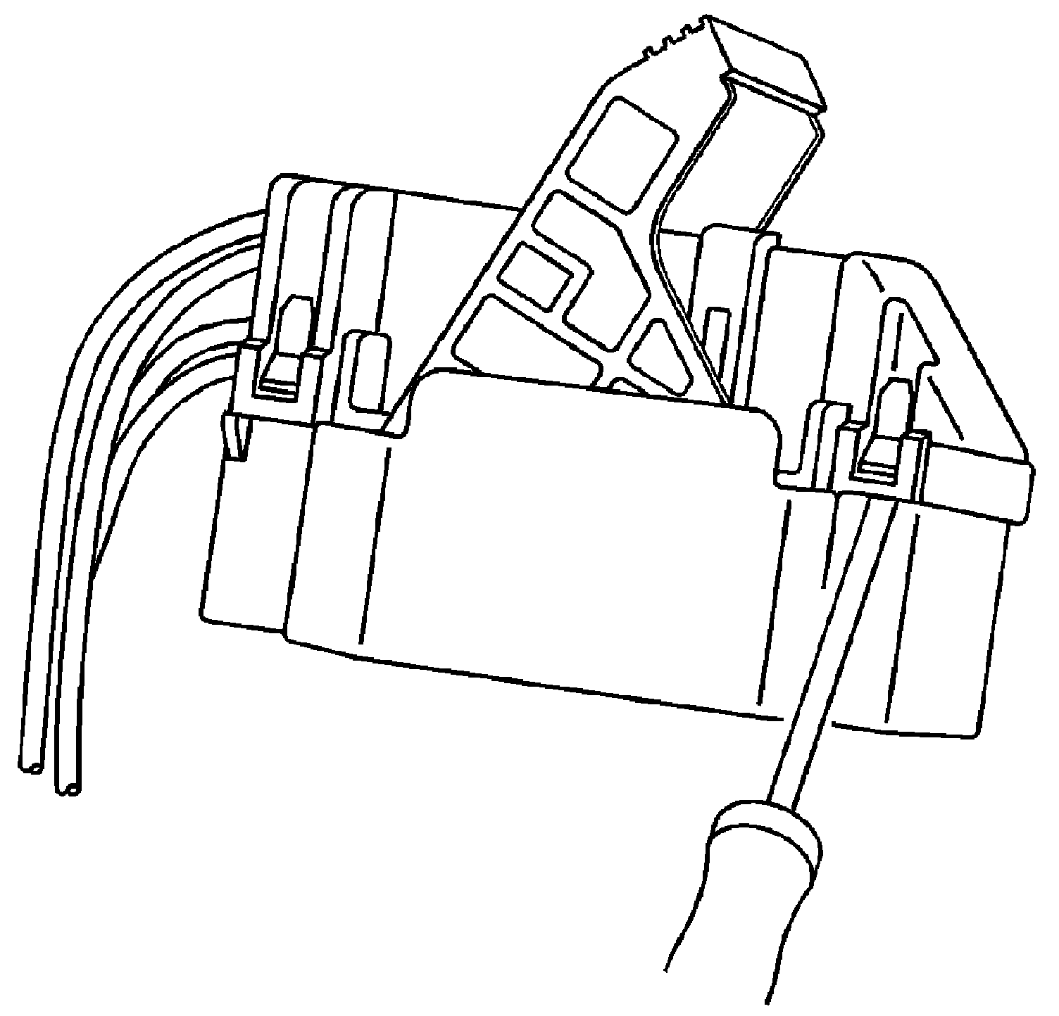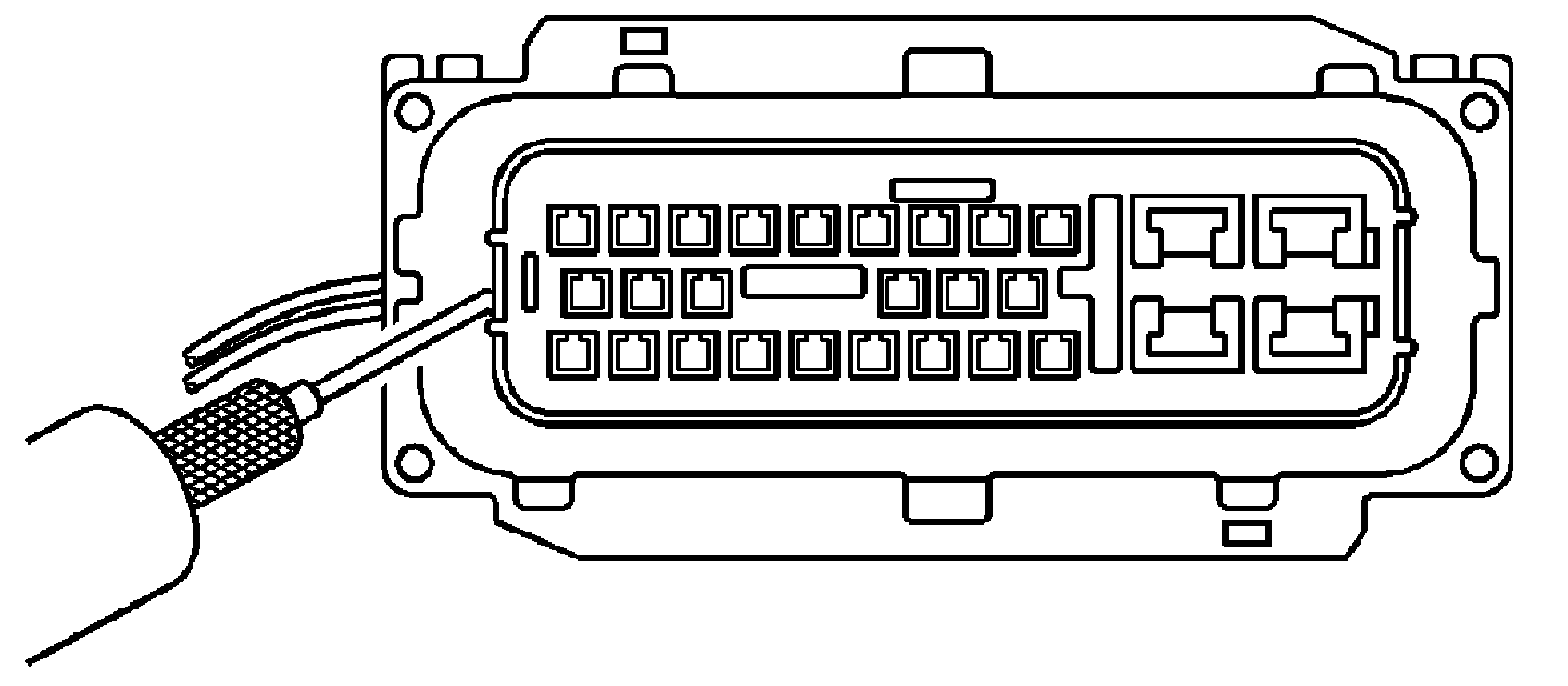 7. Insert the J-38125-553 (15315247) tool into the entry canal and pry up on the terminal retainer. The terminal retainer is a small plastic piece on the top of the terminal. The terminal retainer must be held up while the terminal is pulled out of the connector.