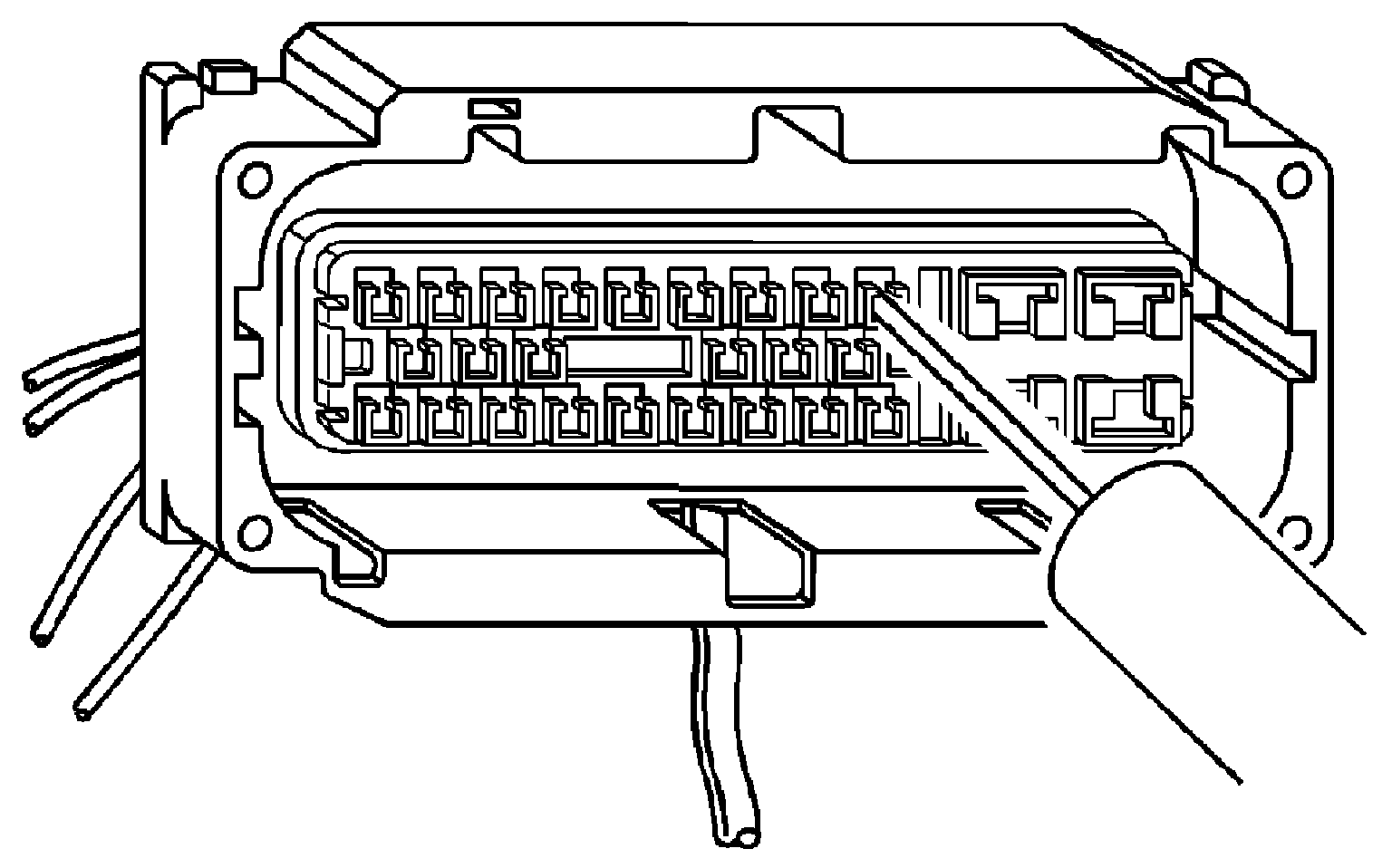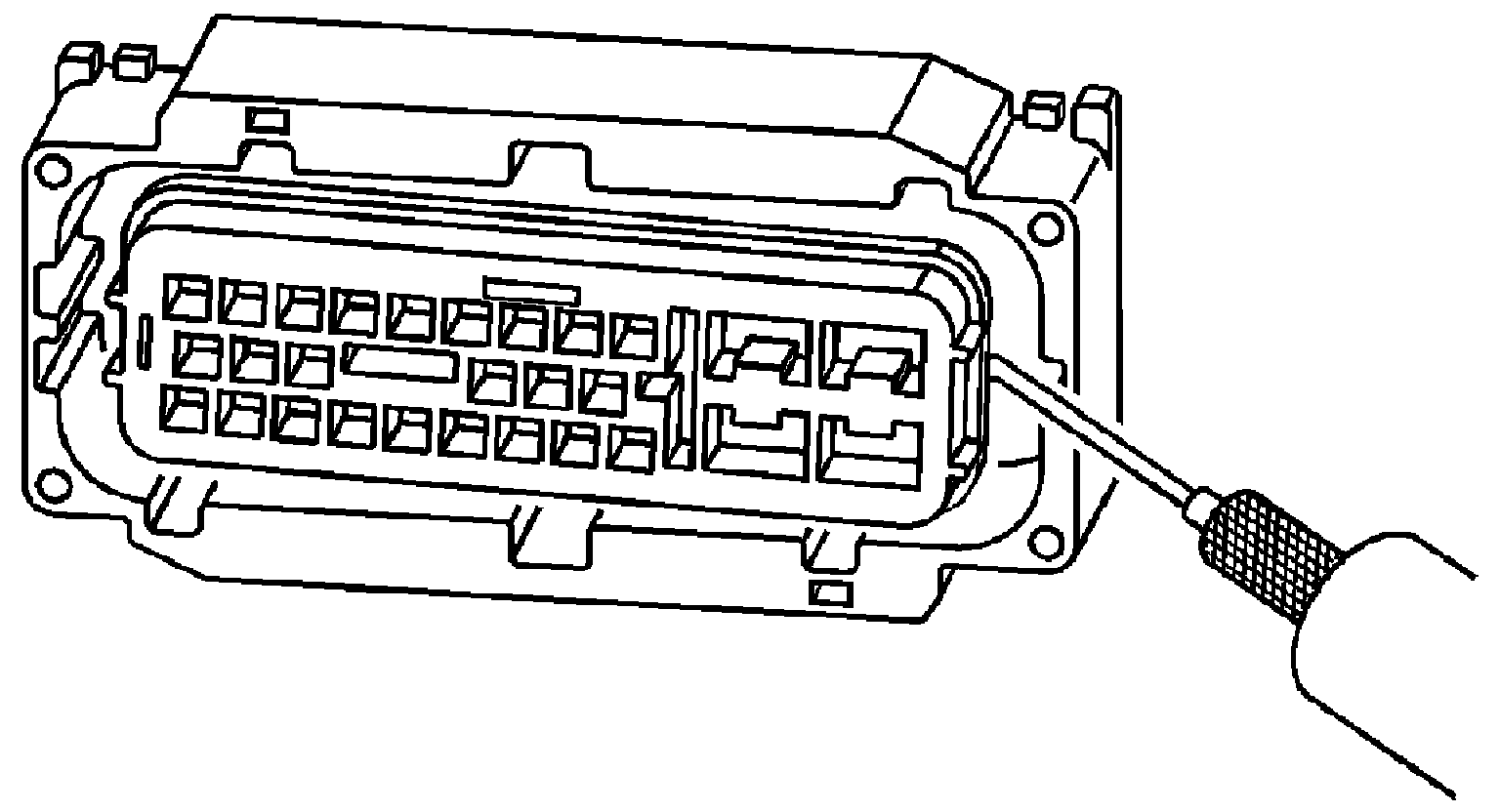8. The illustration shows a cutaway view of the connector to aid the technician in releasing the terminal retainer.