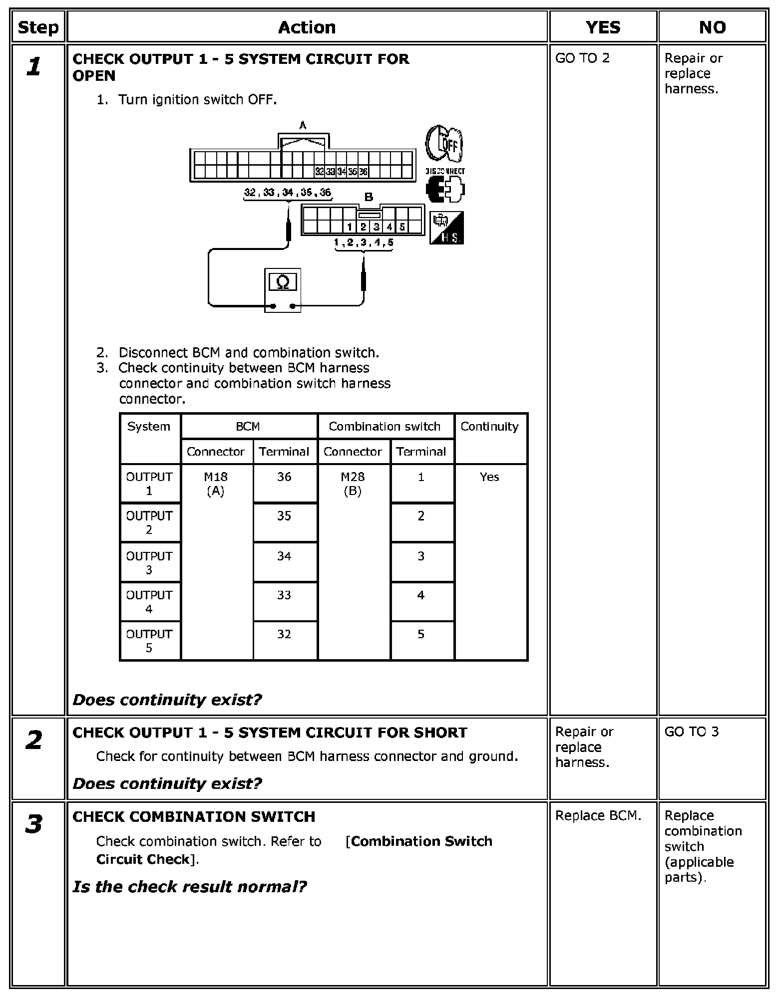 Combination Switch Output Circuit Check