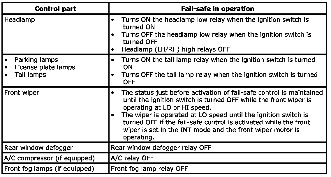 - If the ignition relay cannot turn OFF due to contact seizure, it activates the tail lamp relay for 10 minutes to alert the user to the ignition relay malfunction when the ignition switch is turned OFF.