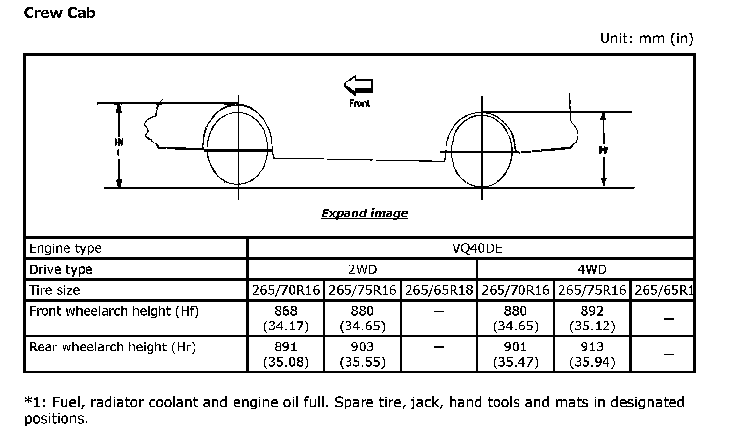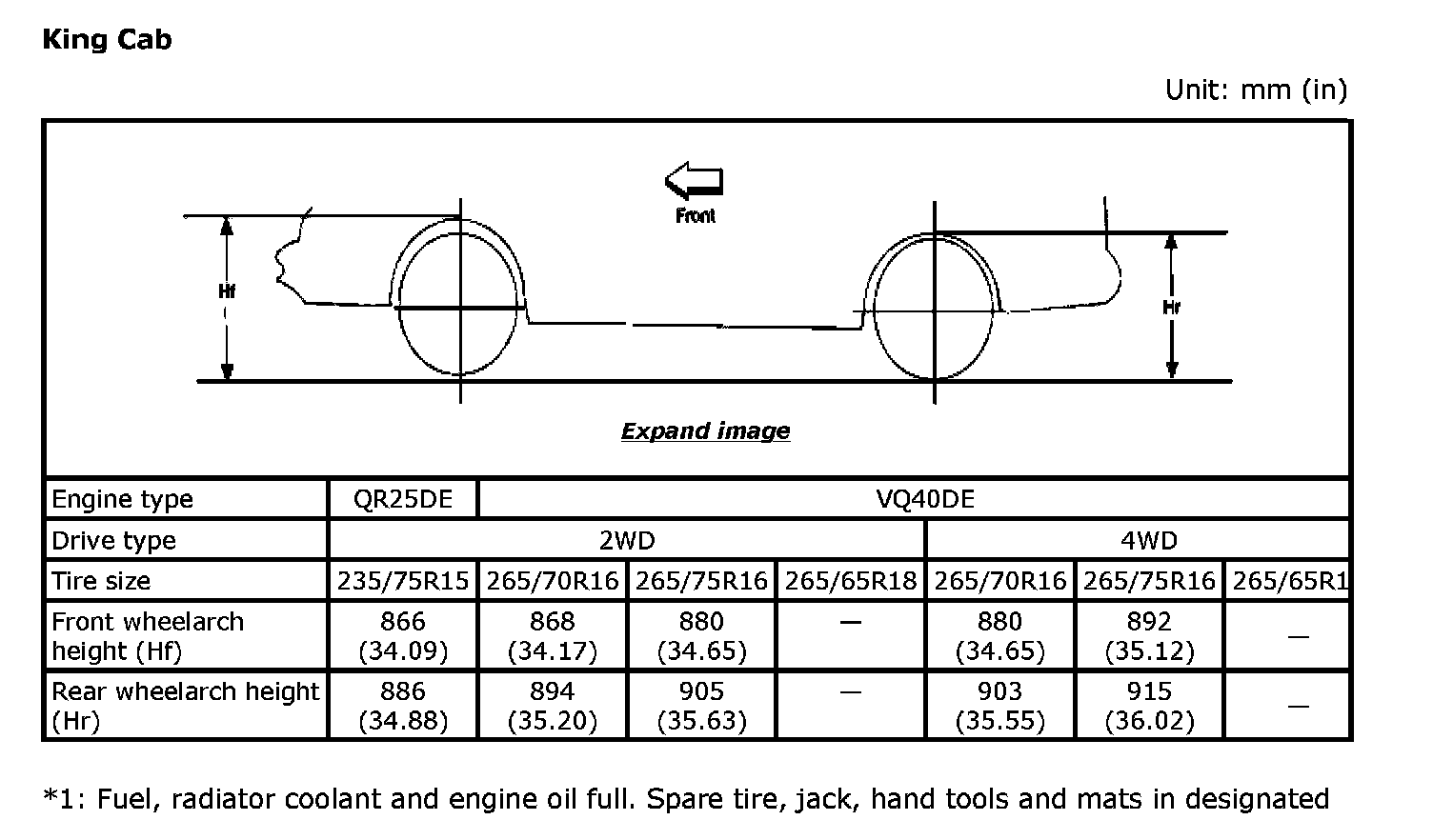 Wheel arch Height (Unladen*1)
