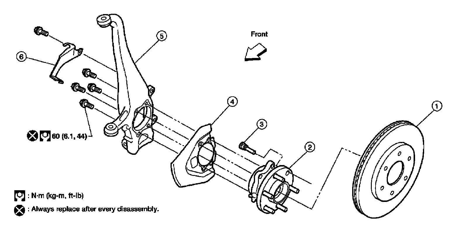 ^ Use new bolts when installing the wheel hub and bearing assembly.