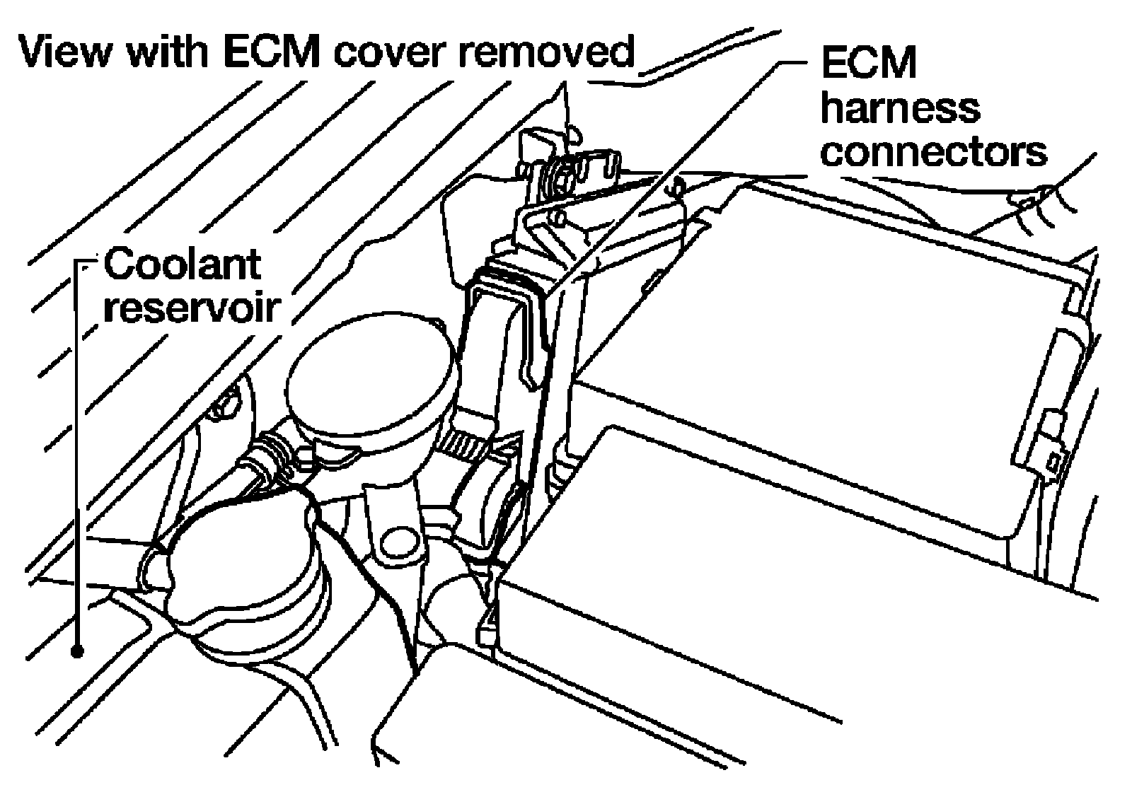 ECM located in the engine room passenger side behind reservoir tank.