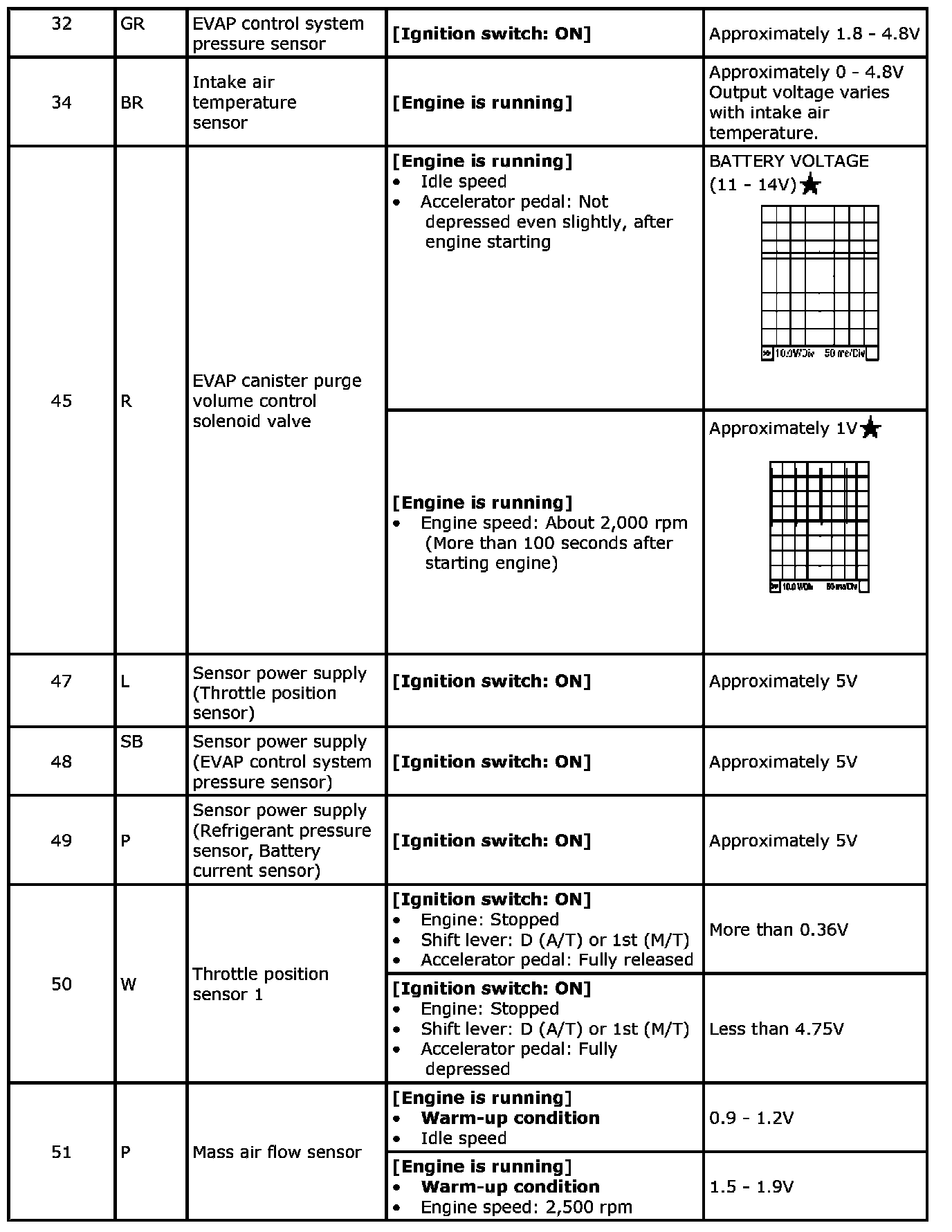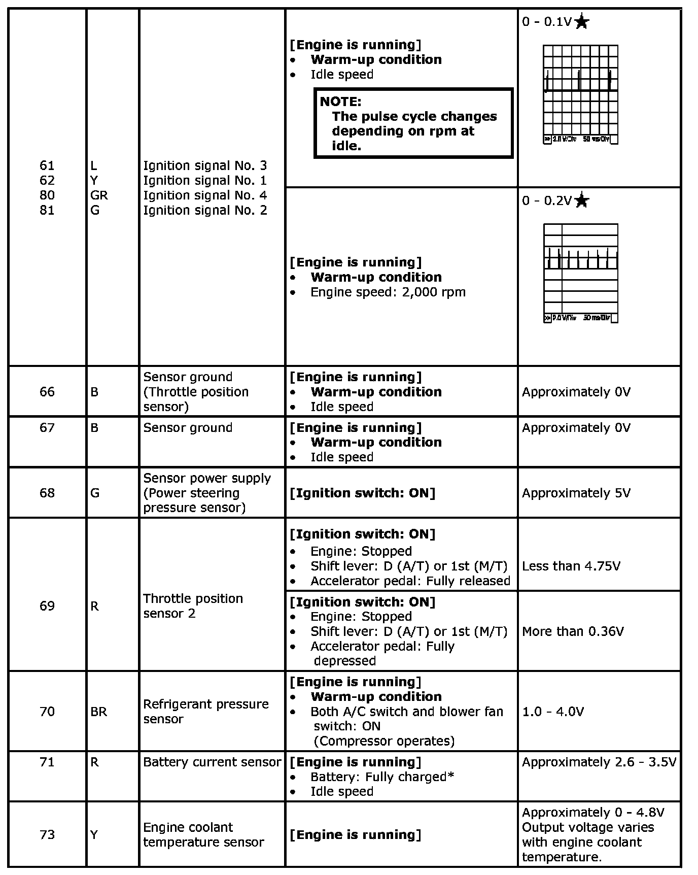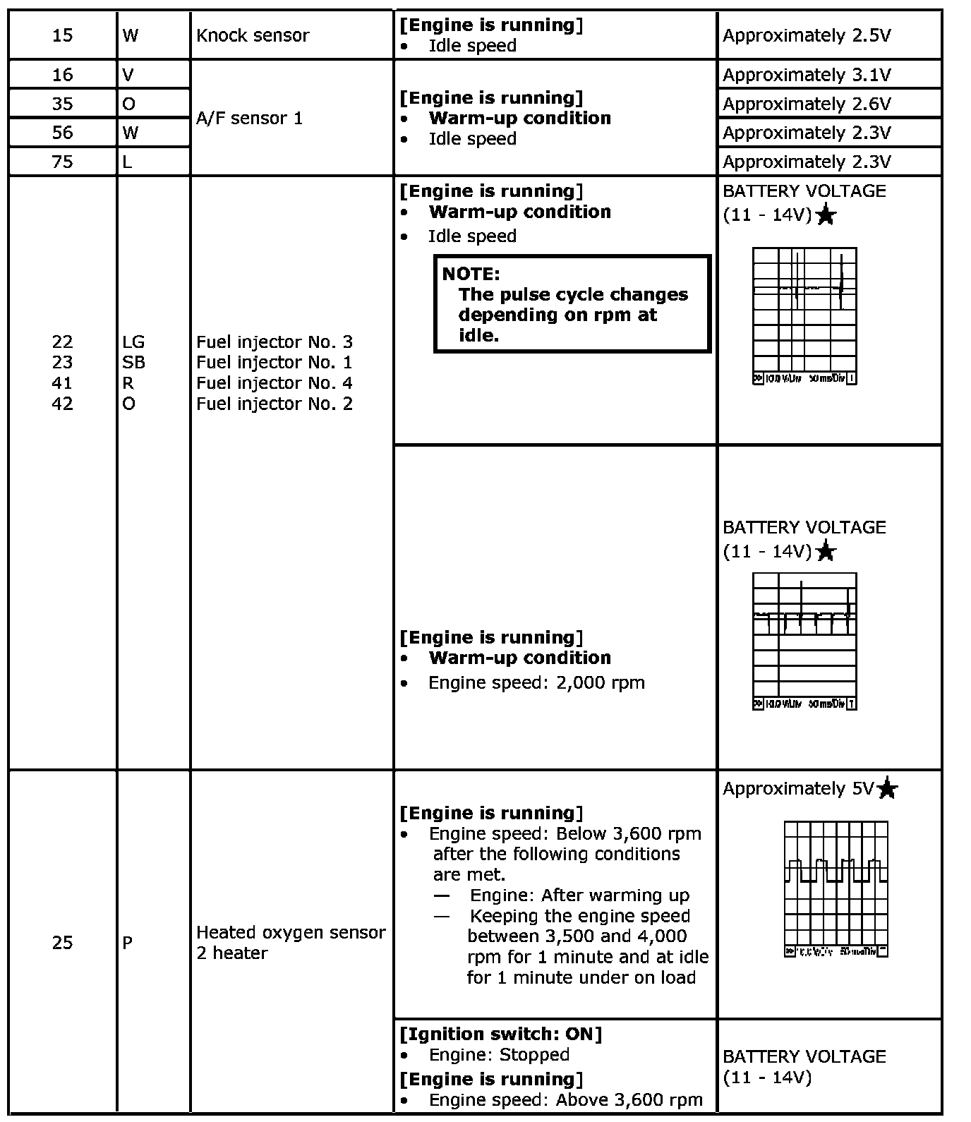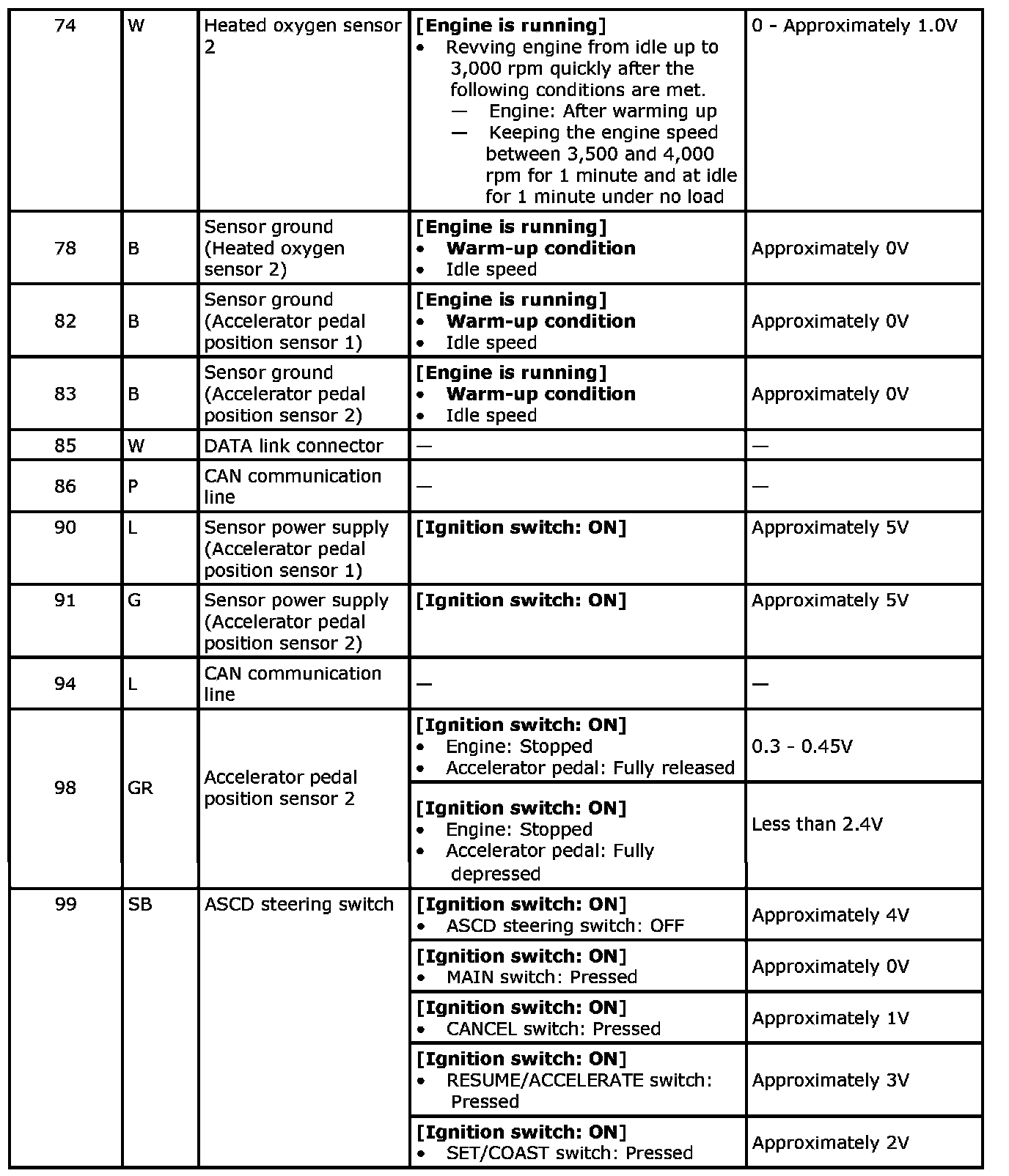 Specification data are reference values and are measured between each terminal and ground.Pulse signal is measured by SDT.