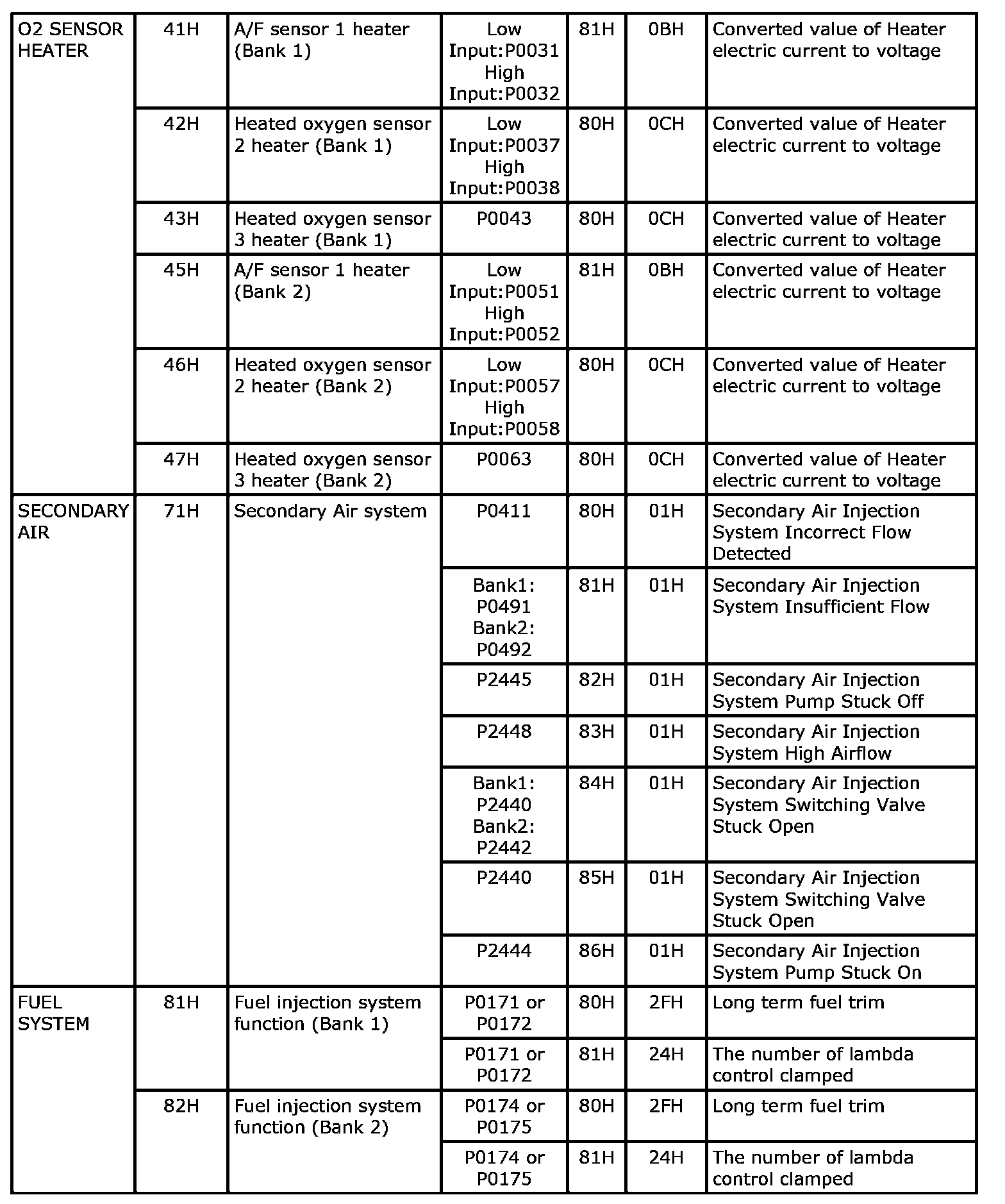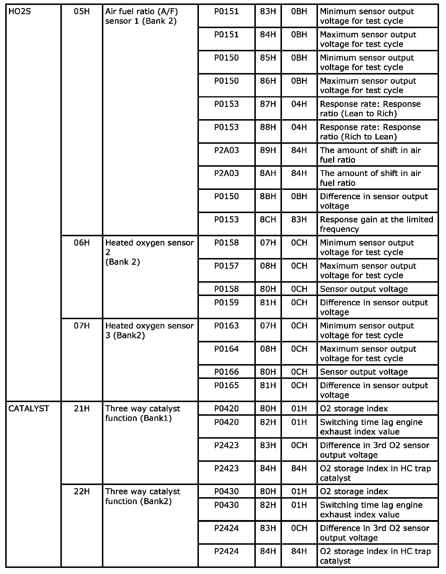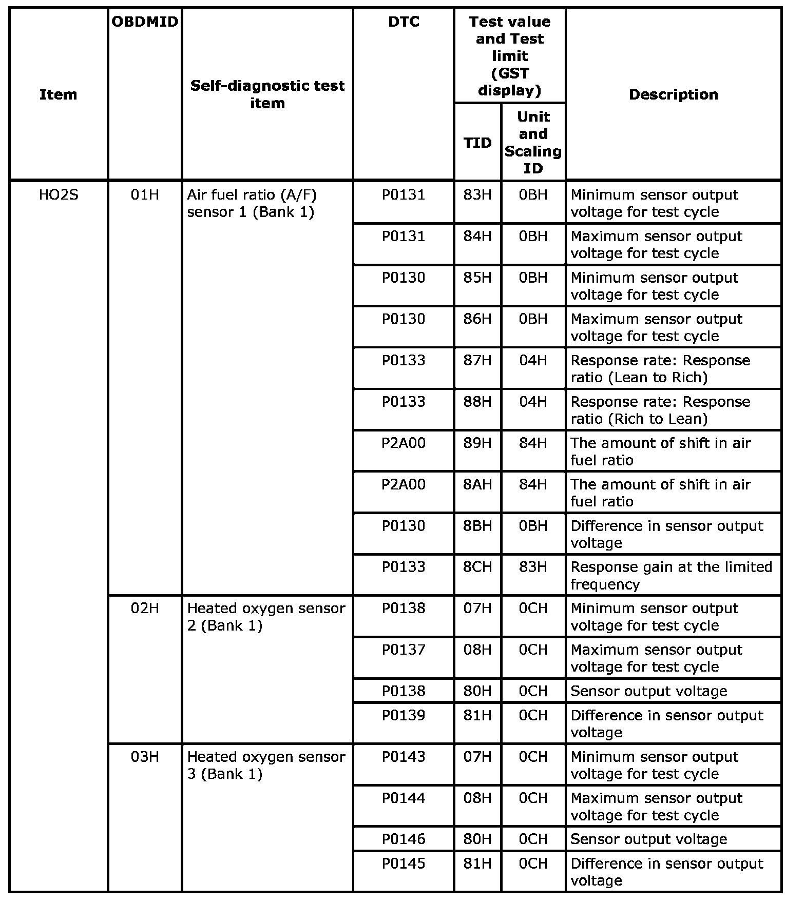These data (test value and test limit) are specified by On Board Monitor ID(OBDMID), Test ID (TID), Unit and Scaling ID and can be displayed on the GST screen.