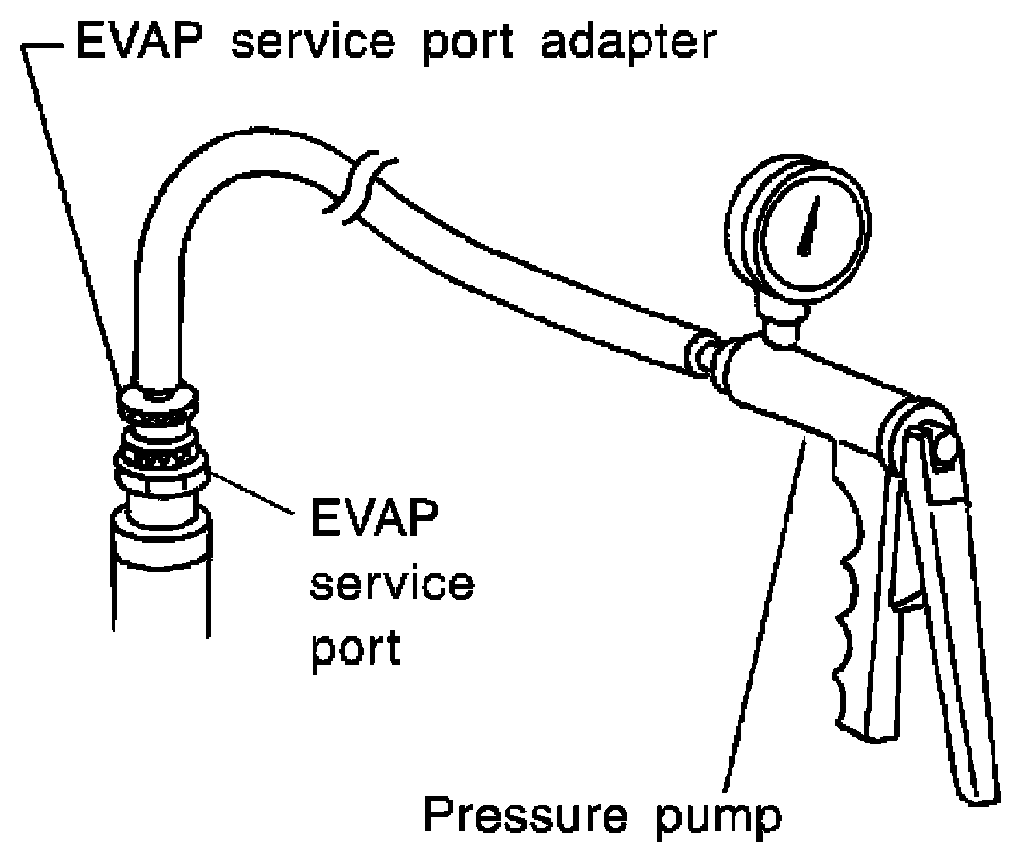 1. To locate the EVAP leak, install EVAP service adapter (commercial service tool) and pressure pump to EVAP service port.