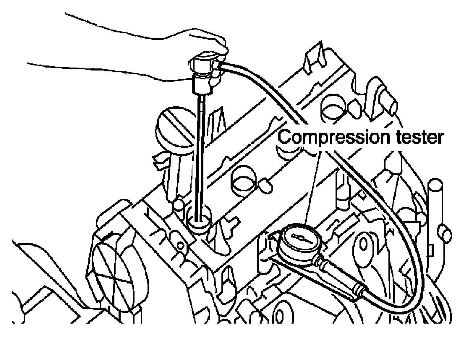 6) Install compression tester with an adapter into spark plug hole.